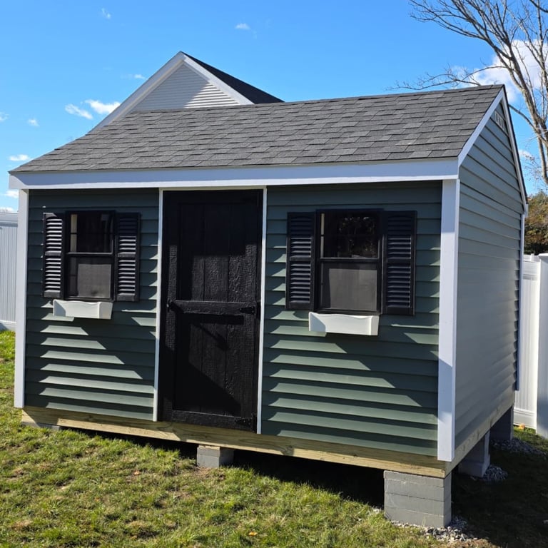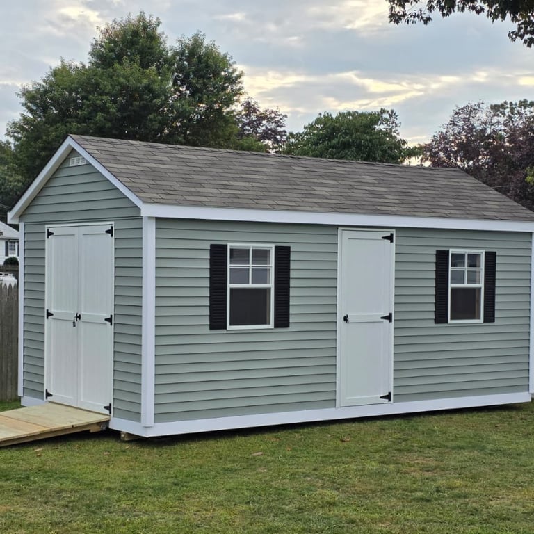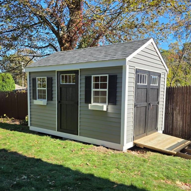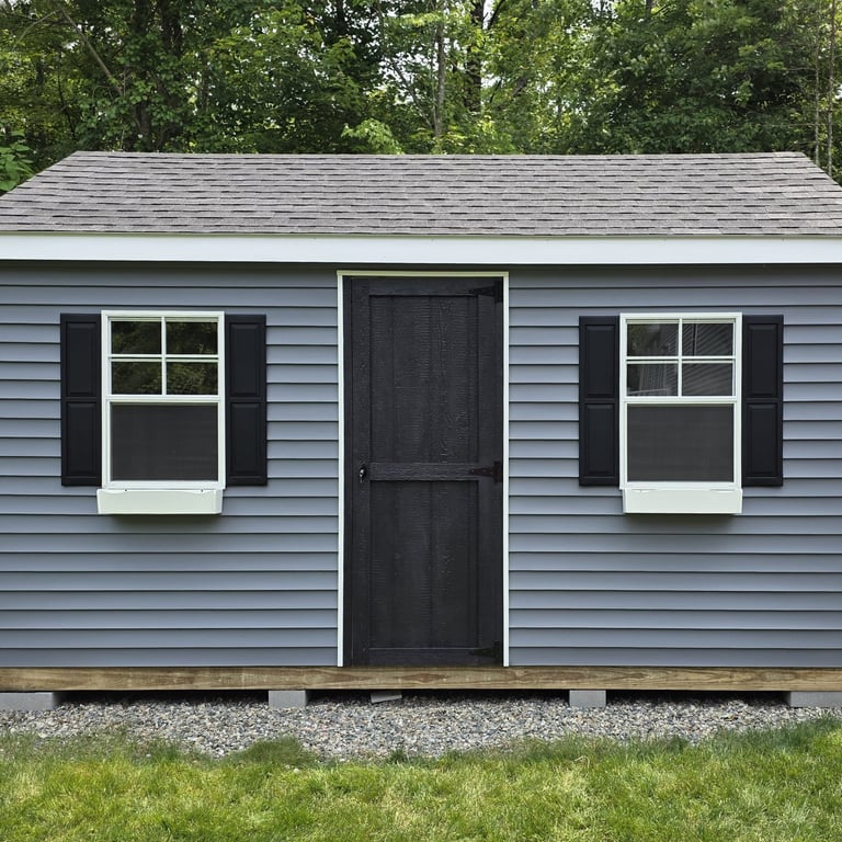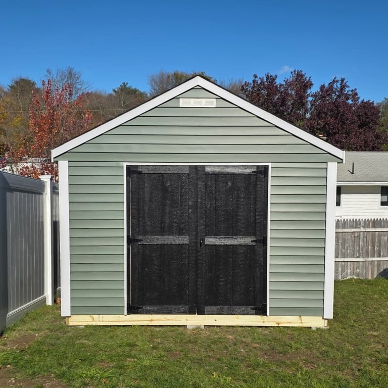 10x16 - 7FT WALL - VINYL SIDING - BLACK DOORS